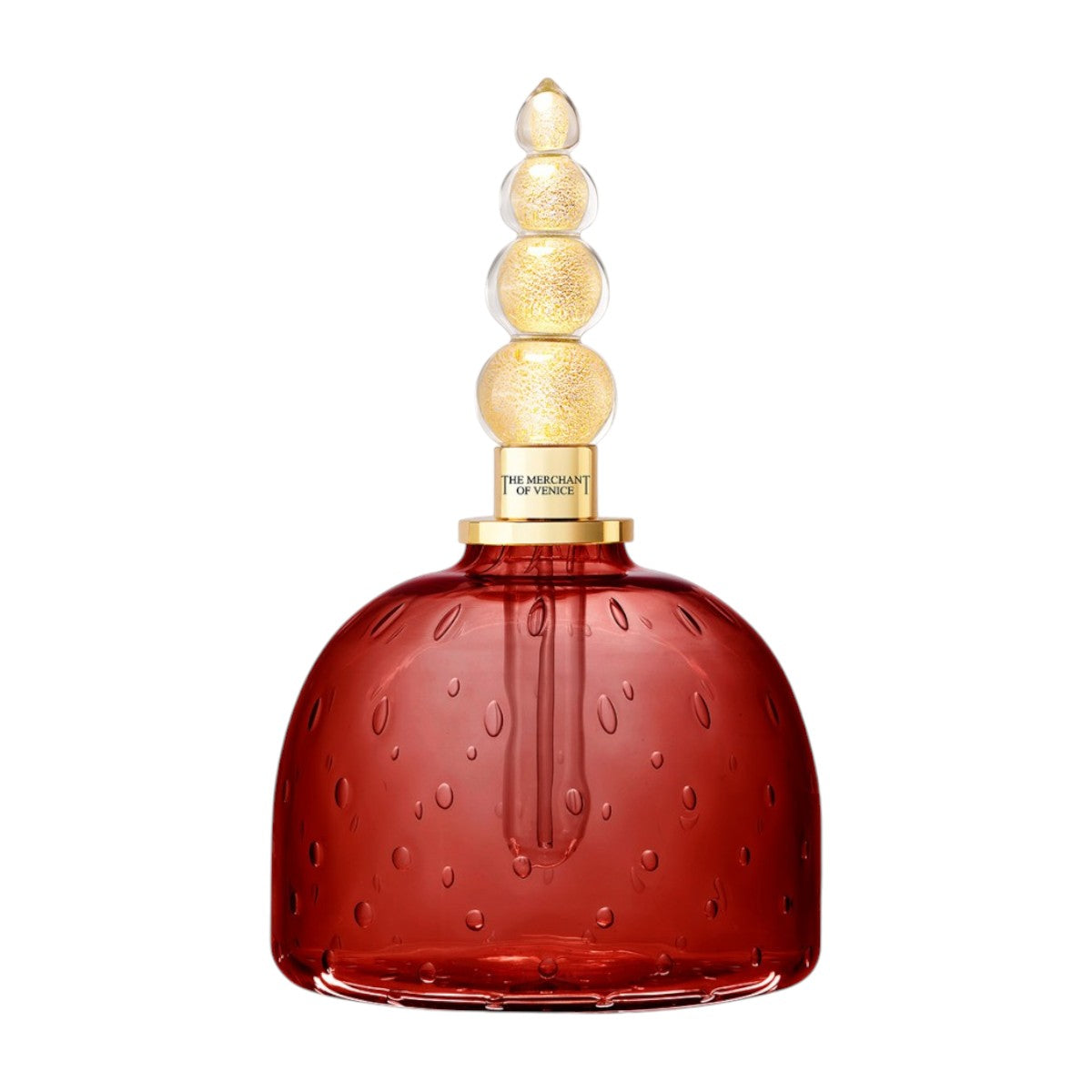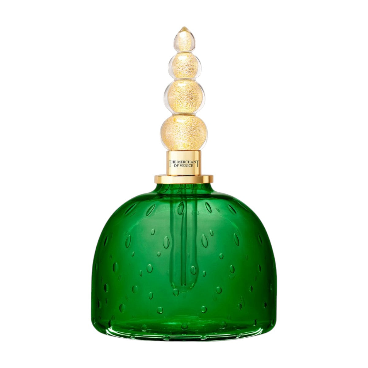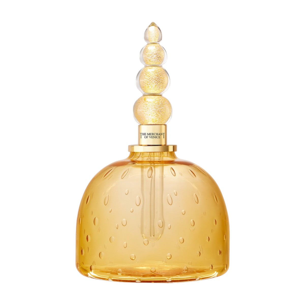 Questa collezione in edizione limitata è realizzata in vetro veneziano soffiato a mano con tecnica Bulicante, lavorato artigianalmente da esperti maestri vetrai. Il flacone dalla forma circolare, che trae ispirazione dall'antica architettura di Venezia, è coronato da un tappo impreziosito da foglia d'oro.